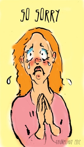 –So sorry for all of the things ever. Now, please recite your flaws and explain, at length, your contributions to the demise of our marriage.