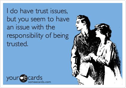 Trust is a huge point of contention with my cheater wife too. Just this weekend, I questioned her heading out to get her nails done for a couple of hours. She stared at me confused like I was babbling in a foreign language, “What?! You don’t TRUST me?!” Now that I reflect back on it, I WAS speaking in a foreign language.