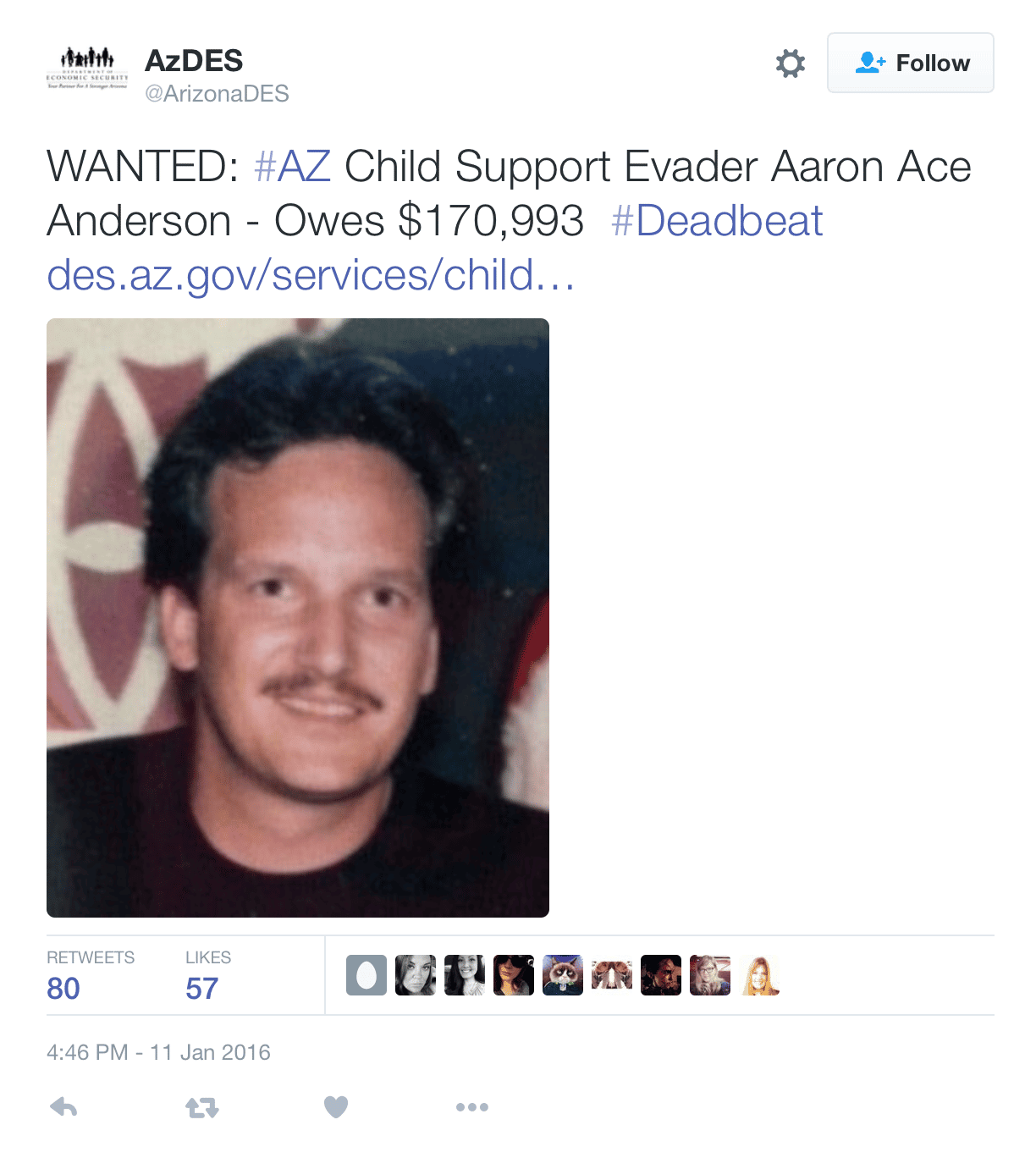 Meanwhile, a big thank you to Gov. Doug Ducey! Chumps, petition your state today to social media shame deadbeats. Hey, deadbeat parents — you want to screw over my child? #Notonmydime