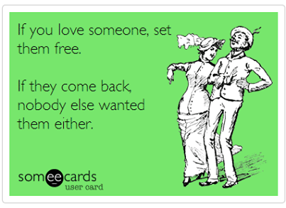 Freedom is just another word for nothing left to lose. So, since I’m nothing and she’s lost me then she’s truly free. And thankfully so am I! And BTW – I was young and in love and I married you and never fucked anyone else, not after the first time or the second time or now even after the third time. But three times a loser….